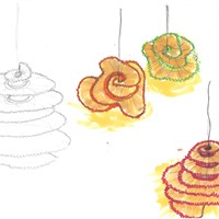 Original concept development for feature lighting based on the organic shape of pencil shavings to tie back with my Super Size theme.